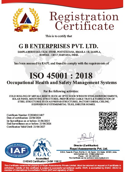 The company is successfully supplying Cold roll formed metal sections PAN India and Overseas with best quality. It is one of the leading ISO 9001:2015 certified organizations in India renowned for providing global innovative engineering solutions.